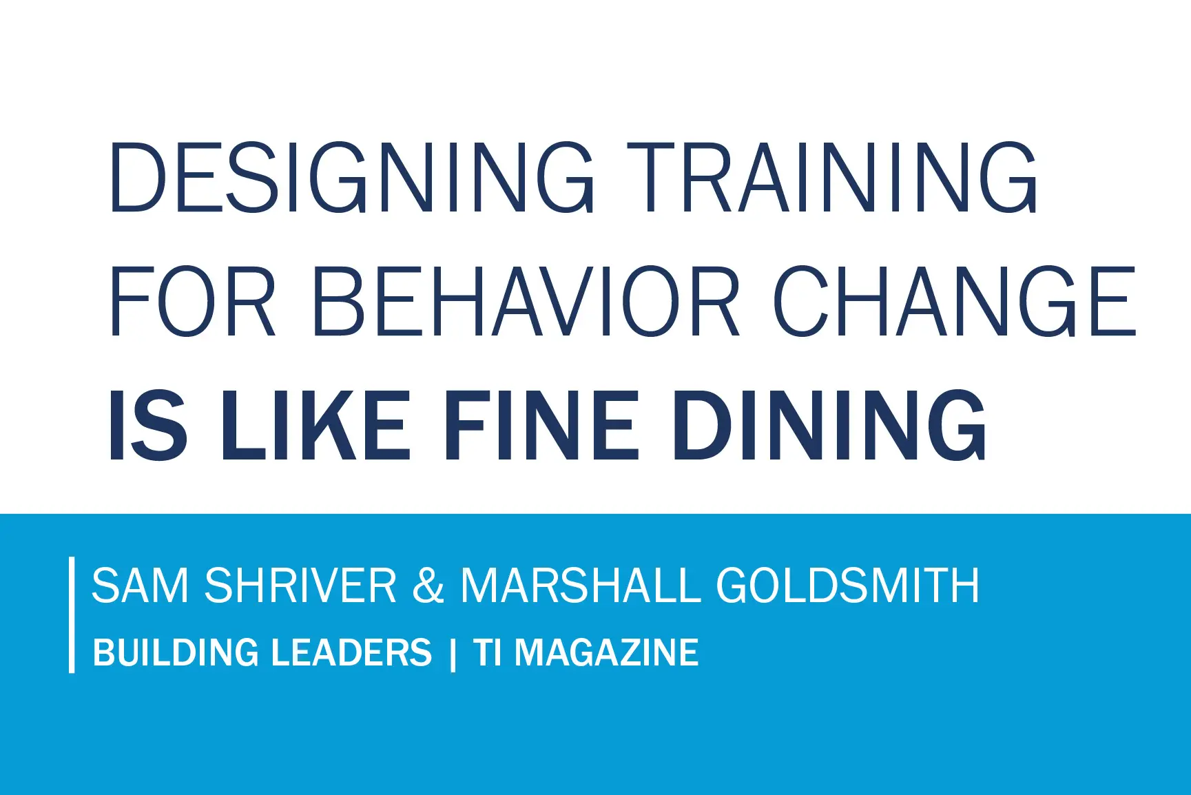 Download this article to learn more!There are some things that the term “dinner” has in common with the term “fine dining” … but for most of us, those words conjure up drastically different imagery. Read this article to learn about the strategic benefits organizations experience when they include influence in their leadership training initiatives. Download Now |