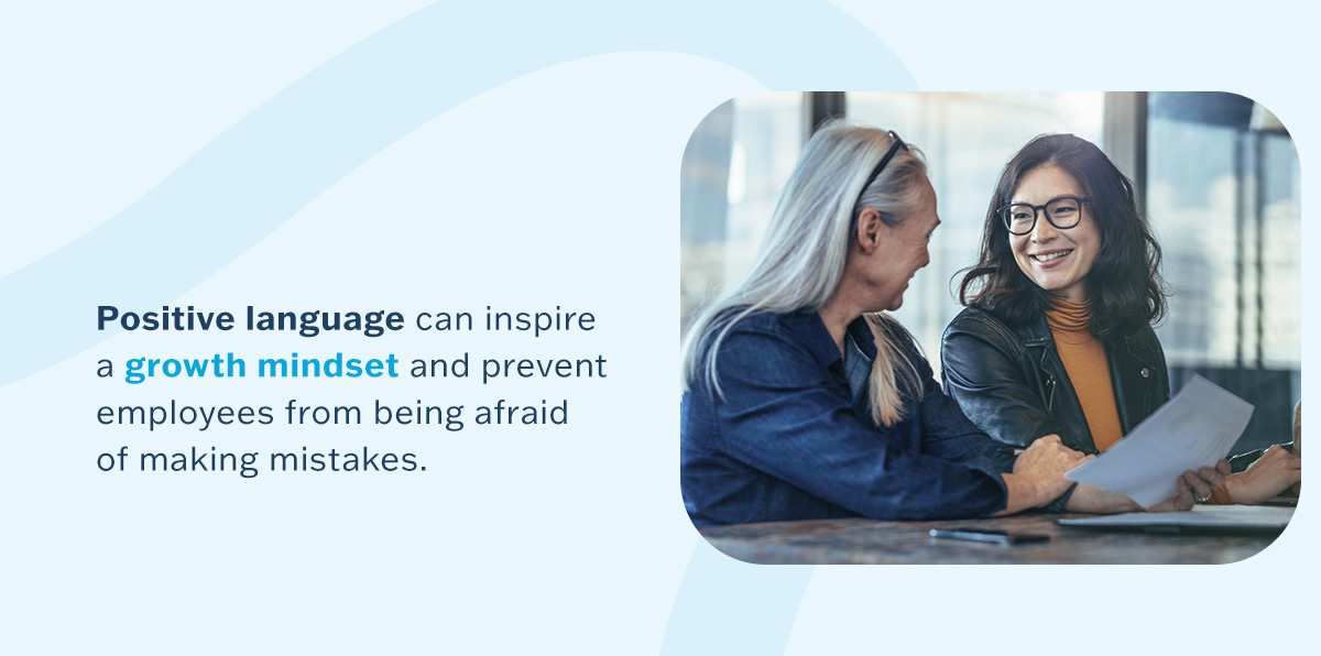 Positive language creates proactive change and empowers employees to share the company vision. It boosts productivity by keeping workers motivated and maintaining an environment that prioritizes growth.