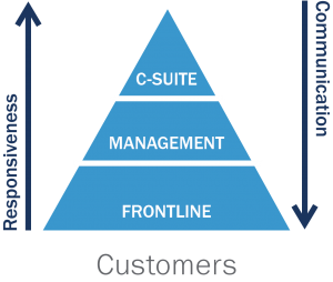 Servant leadership fundamentally challenged that convention. Organizations as entities needed to be structured and to operate in a manner that reversed the flow of communication and responsiveness (communication up, responsiveness down).
